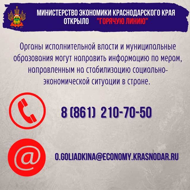 ТЕЛЕФОНЫ «ГОРЯЧЕЙ ЛИНИИ» ПО ВОПРОСУ НЕСВОЕВРЕМЕННОЙ ВЫПЛАТЫ ЗАРАБОТНОЙ ПЛАТЫ Министерство экономики Краснодарского края: Электронная почта: o.goliadkina@economy.krasnodar.ru Министерство труда и социального развития Краснодарского края Телефон: +7 (861) 252-33-15 Государственная инспекция труда в Краснодарском крае Единый многоканальный телефон: 8 (861) 991-09-55 Отдел экономического развития администрации муниципального образования Белореченский район Телефон: +7(86155)3-38-95 Отдел трудовых отношений, охраны труда и взаимодействия с работодателями ГКУ КК «Центр занятости населения Белореченского района» Телефон: +7(86155)2-37-67