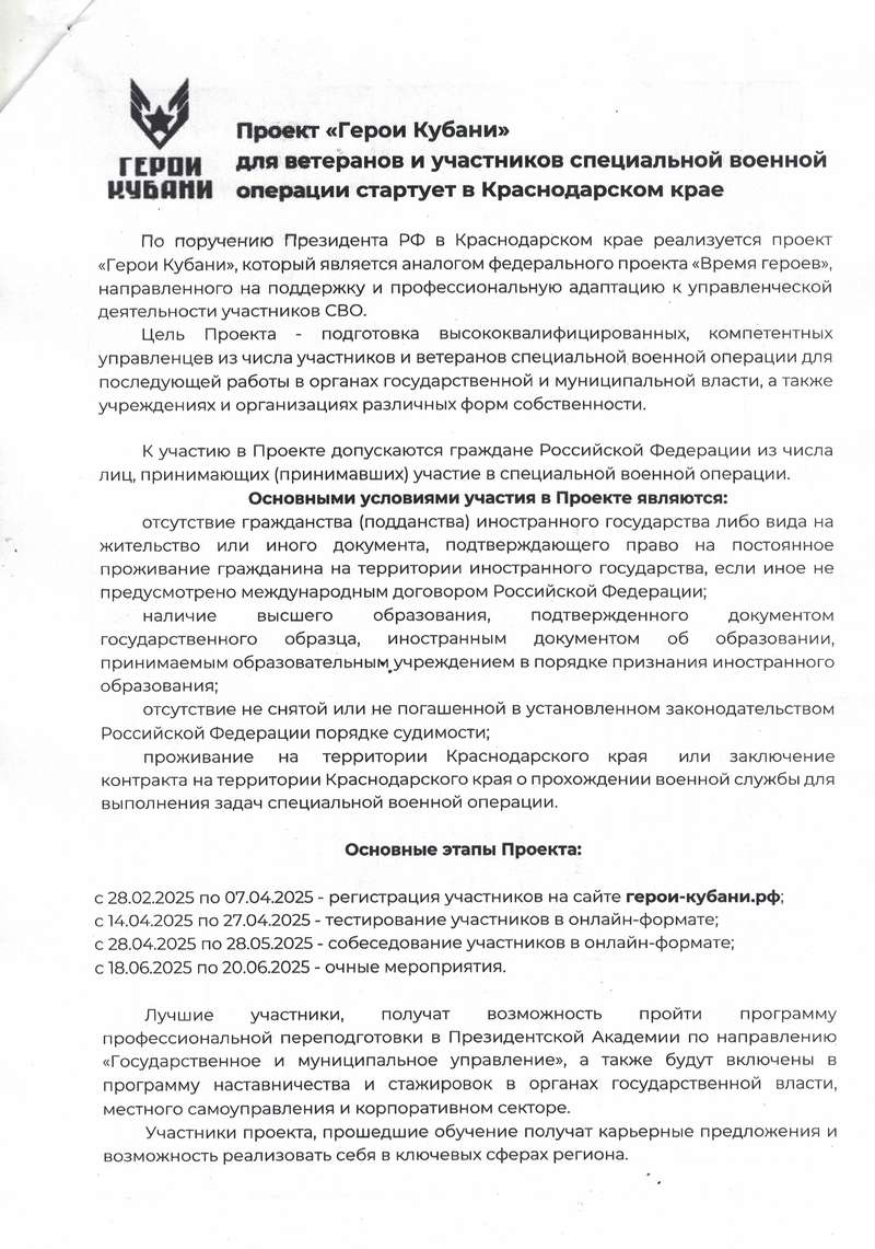 Государственное казенное учреждение Краснодарского края «Кубанский центр государственной поддержки населения и развития финансового рынка» (далее учреждение) совместно с министерством топливно-энергетического комплекса и жилищно-коммунального хозяйства Краснодарского края (далее министерство) реализует постановление Губернатора Краснодарского края от 20 декабря 2022 г. № 972 «Об утверждении порядка предоставления гражданам, имеющим трех и более детей, иных мер поддержки по обеспечению жилыми помещениями взамен предоставления им земельных участков в собственность бесплатно» (далее- Порядок, мероприятие). *** С 21 по 24 марта 2024 года в Краснодаре, в выставочно-конгрессном комплексе «Экспоград Юг», состоится Кубанская Ярмарка - Весенняя, которая будет работать с 9.00 до 18.00. Вход свободный.