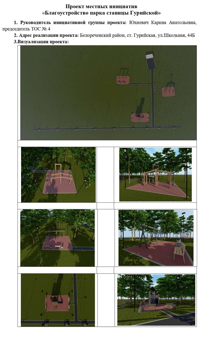 Сегодня на итоговом собрании граждан жители станицы Черниговской окончательно проголосовали за выдвинутый проект инициативной группой. Благоустройство парковой зоны по проекту «Благоустройство парковой зоны в станице Черниговской» по адресу: Краснодарский край, Белореченский район, Черниговское с/п, ул.Гагарина , № 8/1». Описание проблемы: в станице Черниговской нет спортивных зон, место планируемого размещения данного проекта в парковой зоне возле начальной школы номер 34, в которой отсутствует спортивный зал, как школьники, так и любой житель нашей станицы смогут заниматься на площадке и найти себе занятие по душе. Цель : создание комплексной, современной спортивной площадки для максимально комфортных условий, для организации детского и взрослого досуга, укрепления физического развития, пропаганды здорового образа жизни и организации активного отдыха населения. На собрании присутствовало 25 человек, а до этого инициативной группой было собрано 821 подписей в пользу данного проекта (что составляет более 50% населения станицы). Теперь инициативной группе совместно с администрацией муниципалитета предстоит подготовить и согласовать документацию для реализации и участия проектов в конкурсном отборе на получение субсидии из краевого бюджета.